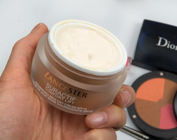 Omdat ik sinds kort pigmentvlekken op mijn gezicht heb gekregen, gebruik ik Lancaster Suractif Comfort lift. Een rijke creme die mijn huid goed hydrateert en tevens de huid beschermt tegen huidveroudering met een SPF15. Tevens verstevigt deze crème mijn huid en verminderd hij de pigmentvlekken. Ik gebruik hem nu al een maandje en ziet dat de pigmentvlekken al minder worden.