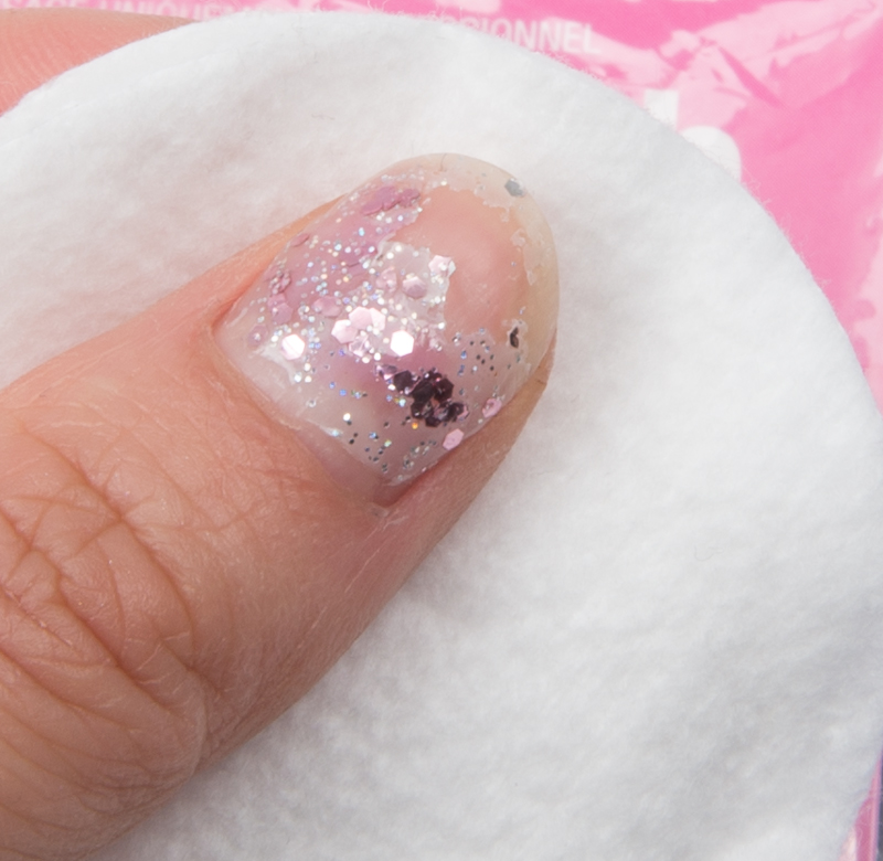 Na een paar minuten kun je de folie eraf halen en voila je glitters kun je met een veeg met een wattenschijf eraf halen!