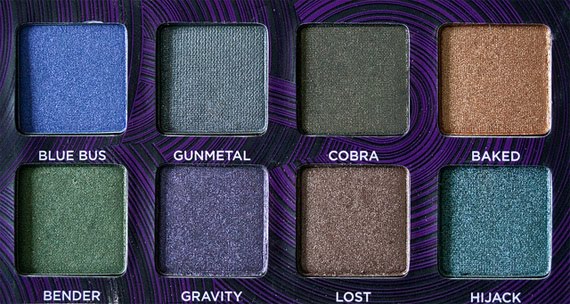 Bovenin het palette vind je eerst acht sprekende kleuren, waarvan er een aantal repromotes zijn of in de vaste collectie zitten, maar waarvan er ook een behoorlijk aantal nieuw zijn. Urban Decay heeft vaak de neiging om kleuren opnieuw uit te brengen en dat vind ik altijd zo jammer. In dit palette vind je dus gelukkig behoorlijk wat nieuws.