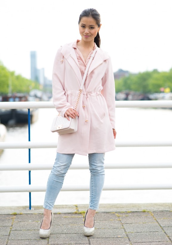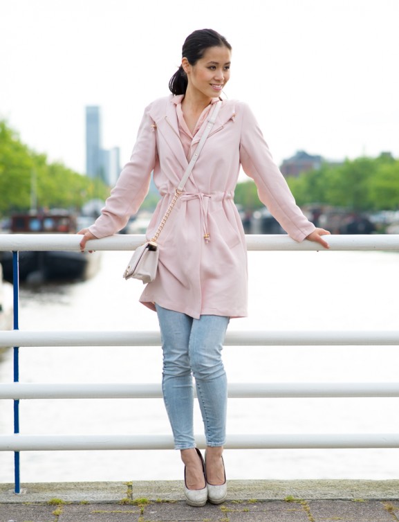 Zacht roze pastelkleurtjes, ik kan er niet genoeg van krijgen. Onlangs kwam ik deze roze trenchcoat tegen van Rinascimento. Een mooie lange trenchcoat die je eigenlijks niet kunt missen in je kast. Soms draag ik van die lange jurken en dan vind ik het wel fijn om een trench te hebben die wat langer valt.